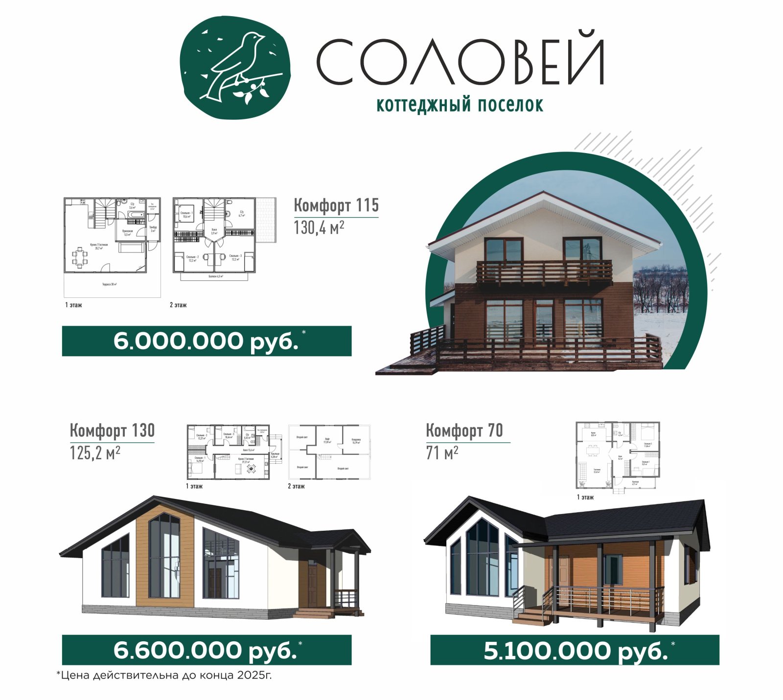 Выгодные цены на старте! В коттеджном поселке «Соловей» началось строительство выставочных домов.